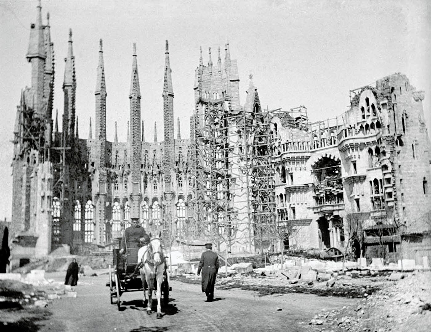 When Gaudí tragically died in 1926 after being struck by a tram, the construction was far from finished. At the time of his death, only the crypt, the apse walls, one portal, and a single bell tower of the Nativity Facade were complete, representing just one of the 18 planned towers.