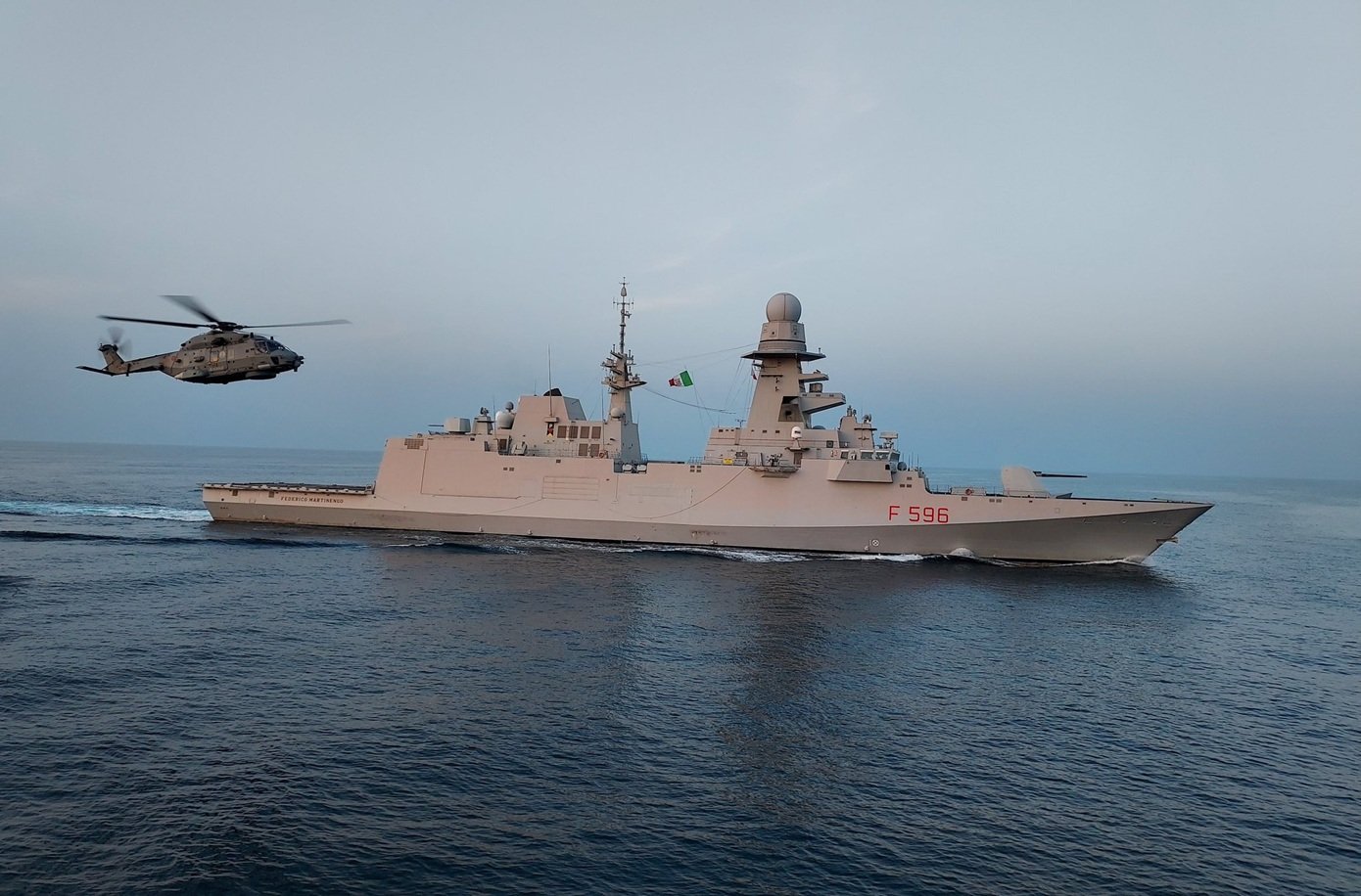 Named after Federico Martinengo, a naval aviator who died in World War II, the ship is a product of the FREMM (European multi-mission frigate) joint program between the Italian and French defense industries. Built by Fincantieri in Liguria and launched in 2017, the vessel measures 144 meters in length and can reach maximum speeds of around 27 knots (50 km/h). Frigates of this class are exceptionally versatile; they are designed to hunt submarines, escort larger carriers, and neutralize airborne threats.